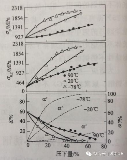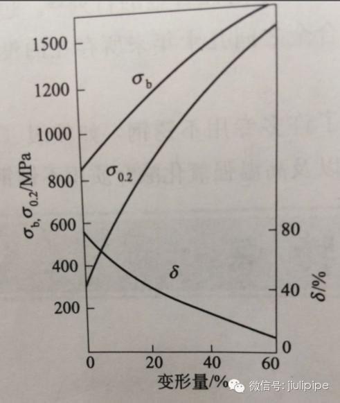 图1.经冷变形的1Cr17Ni7钢的室温力学性能