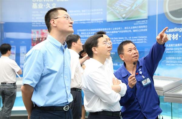 近日,湖州市市委副书记、市长陈伟俊在副市长董立新、吴兴区区委书记蔡旭昶及有关部门领导的陪同下来我公司调研,深入了解久立经营发展情况。周志江董事长在公司展厅为陈伟俊市长一行作了讲解,并汇报了公司今年的生产经营情况。